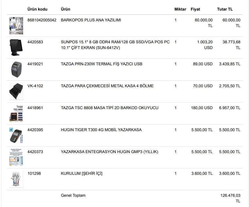 BARKOPOS STANDART PAKET BİLGİSAYAR, YAZICI, OKUYUCU, ÇEKMECE 17"