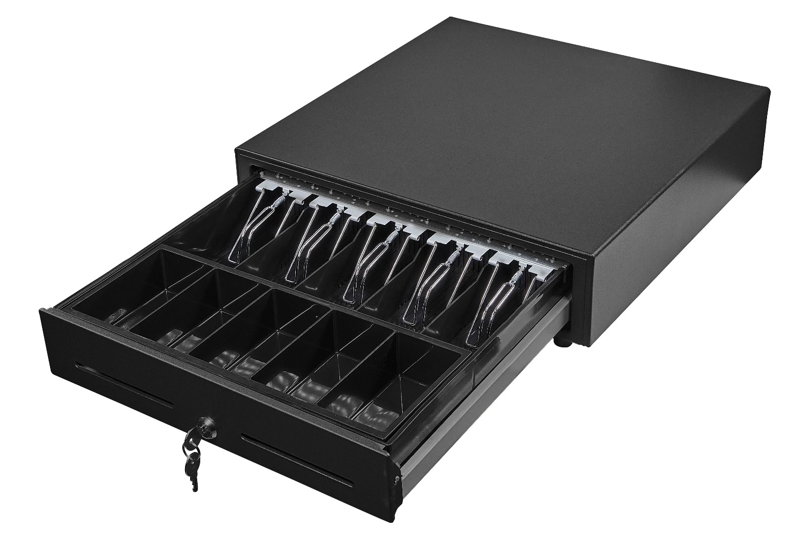 Sağlam metal kasa yapısı, cihazı dayanıklı hale getirirken, güvenli kilit sistemi içeriklerin güvenliğini sağlar. Ergonomik tasarım ise kullanıcıların kolayca erişim sağlamasına olanak tanır ve uzun süreli kullanımlarda rahatlık sunar. 8 Join bölmeleri, bozuk paralara, fişlere, çeklere veya küçük ödeme araçlarına rahatça yer açar.